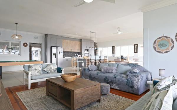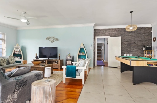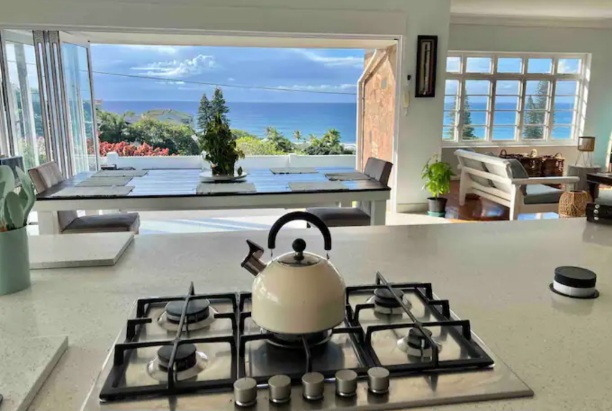 Main House: Four spacious bedrooms, modern bathrooms, ample cupboard space, a fully updated kitchen with premium appliances, and expansive living/entertainment areas that flow onto a large veranda with sea views.