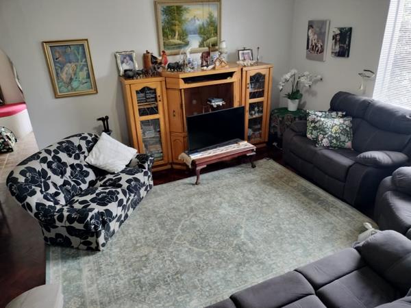 The bedroom wing offers three spacious rooms and two bathrooms, with the main bedroom boasting a chic en-suite, fully tiled for a contemporary finish. Classic parquet flooring in the passage and bedrooms adds timeless charm, while a separate laundry room enhances everyday convenience.