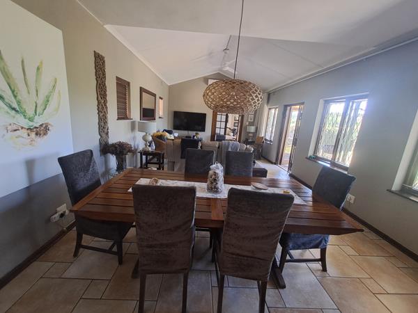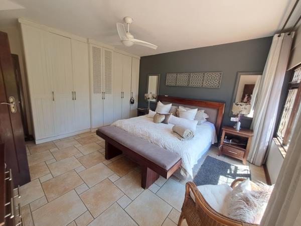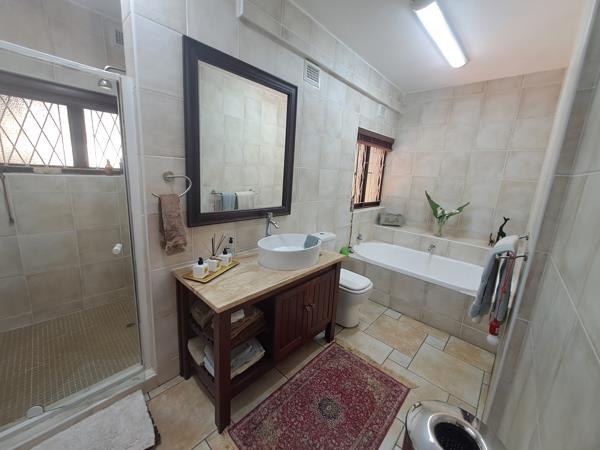 It has 4 bedrooms, 1 office, large lounge and dining area. The kitchen is something to behold. Gleaming wooden cupboards and granite countertops. There is a sunny guest bedroom with a beautiful on-suite bathroom on the ground floor.