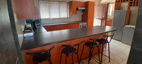 The home boasts a large open-plan lounge and dining area that flows out to an entertainment patio complete with a built-in braai and swimming pool ideal for relaxed living and hosting guests. The kitchen is well-sized and ready for a modern update to match your personal style.