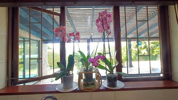 The open-concept living areas unfold effortlessly a designer kitchen flows into the dining and lounge spaces, leading out through wide glass sliders to a covered entertainment patio, glistening pool, and fire-lit boma. Whether hosting sunset soirees or enjoying quiet mornings with coffee and crashing waves, this home offers the perfect stage for every occasion.