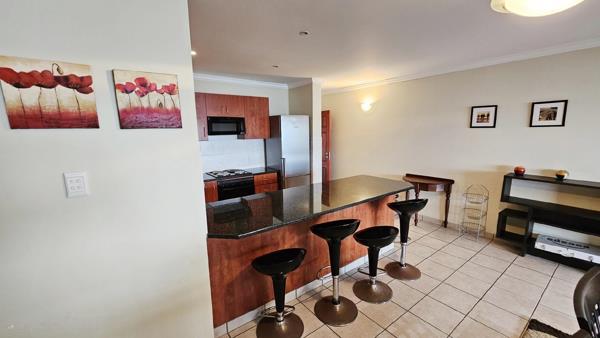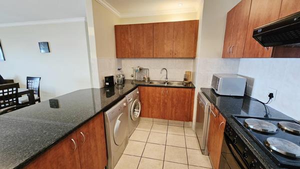 This inviting 3 bedroom, 2 bathroom apartment is nestled within a well maintained complex in Ramsgate, offering an ideal coastal lifestyle. The property immediately impresses with its attractive entrance, featuring lush flowering vines and immaculately maintained gardens, leading to the communal swimming pool area. This is a top floor unit, with approximately 10 stairs. On entering the unit you are greeted by an open plan design, while the functional kitchen boasts dark granite countertops, stylish mahogany cabinetry and tiled floors, equipped with a double zinc, stove with extractor fan, dishwasher, washing machine and tumble dryer. Its open plan design seamlessly connects to the dining room and lounge, fostering comfortable yet connected living and entertaining while taking in the endless ocean views, throughout the home.