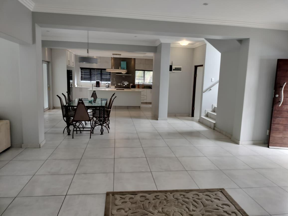 This level also opens out onto a deck with a sparkling swimming pool, creating the perfect indoor-outdoor relaxation area.