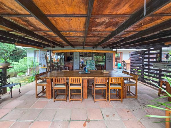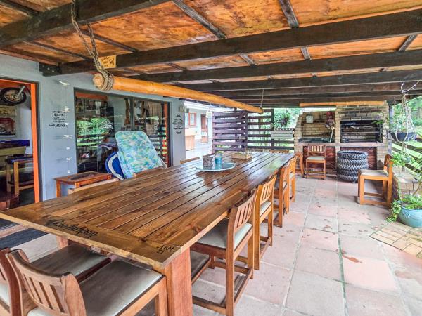 This home features four bedrooms, and three bathrooms. An open-plan living area leading to a large patio with a built-in braai, creating an entertainers dream. The expansive entertainment and bar area presents a versatile space that could be easily converted into a flatlet, complete with a bedroom and bathroom.