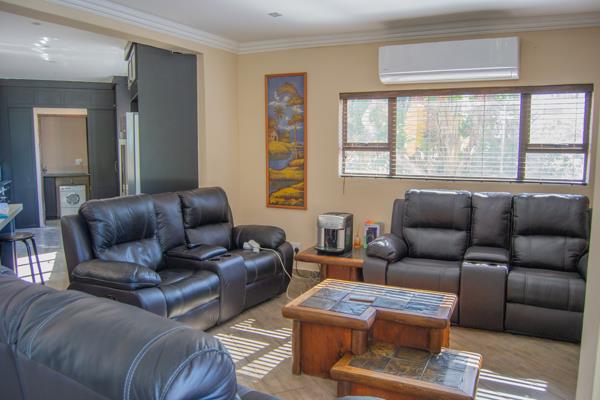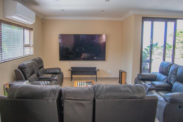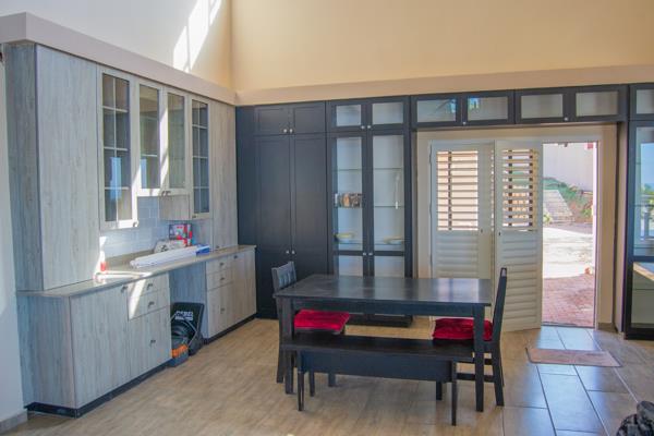 Perfect for entertaining, the home features a built-in braai within the open plan lounge & dining area which opens out via stacking doors to a large balcony and covered Lapa area. There is an inverter for seamless power backup. Additional features include a gas geyser, water tanks, and CCTV cameras throughout the property.