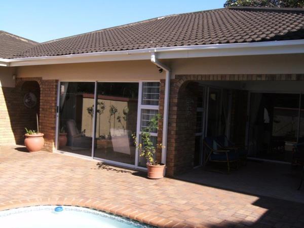 Unit comprise 3 large bedrooms with main bedroom air conditioned, walk in closet and built in cupboards and en suite. All bedrooms have fans! Open plan kitchen with separate scullery, open plan living areas that lead out to large undercover patio and pool area. Good security, burglar bars and security gates, garden walled and gated and automated double garage! Direct access to beach!