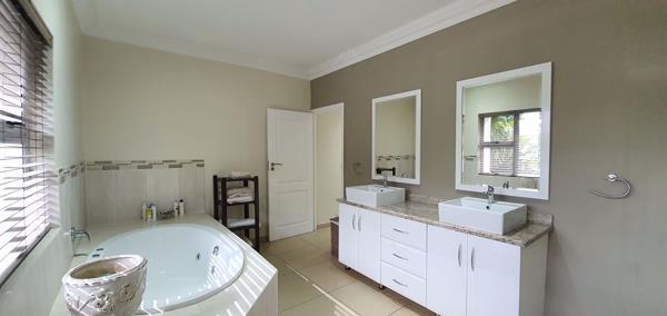 A Grand Home in a Secure Eco-estate . A large modern entrance greets you with large windows in this tall double-volume home. Large double doors open into a bedroom (or study) that overlooks a small garden. Two bedrooms on the top floor grant you two large balconies overlooking a well-maintained garden and nature within the eco-estate. Of these, the main bedroom sections off as it''s own area with a large walk-in closet and bathroom. There is access to a linen closet in the hallway. The large staircase leads you down into the living room, where you have access to even more verandah''s and a rim-flow pool. The covered patio gives you a tall ceiling with the same view of the garden and eco-estate the two bedrooms on either end have access to this patio, making it the perfect place for family gathering. The large kitchen opens up to a dining room and has access to a scullery with plenty of cupboard space. An additional outside courtyard leads to a concrete toolshed and laundry area and the large garage is another point of entry into the house. There is a Jojo tank located in the tool room.