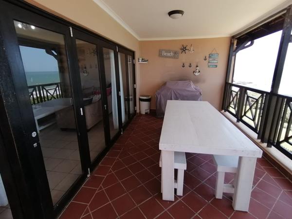 This Stunning 3-bedroom apartment can be found in a sought-after complex in Shelly Beach. Located right on a private beach, this top floor apartment boasts fantastic wrap around sea views. The balcony runs the length of the lounge and the bedroom and is the centre of attraction with the view it has to offer. The apartment comprises an open plan kitchen/diner and lounge. The lounge is spacious and has stacking doors which open up onto the balcony. There are three well sized bedrooms (main en-suite). The main bathroom has a shower and the second bathroom a bath. There is a long passage between the bedrooms which boasts many extra BIC.