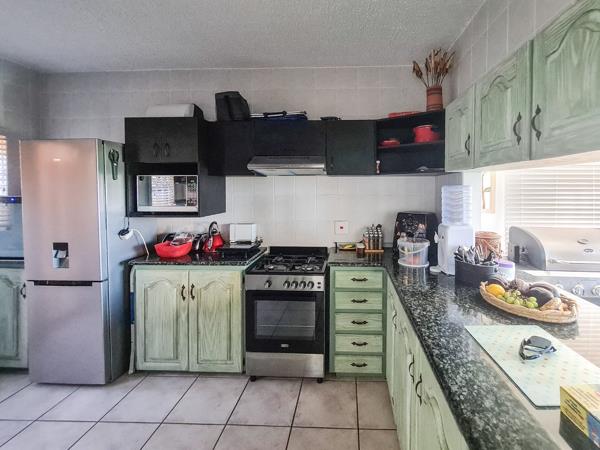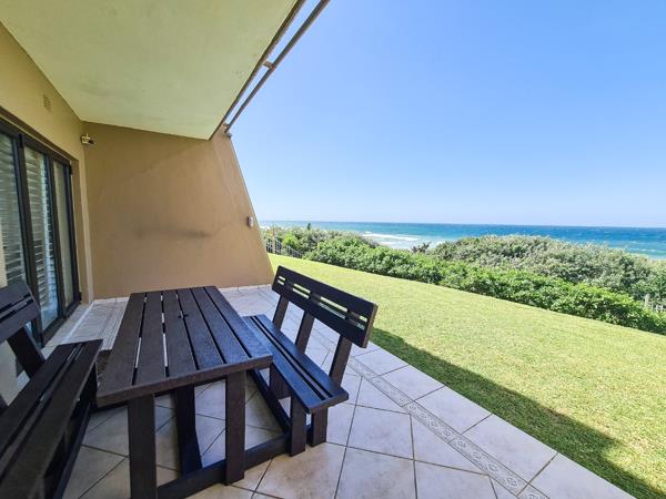 The unit comes furnished (excluding a few personal items) and is very neat. The kitchen boasts granite tops, ample cupboard space and a gas stove. The lounge and dining room are open plan designed, and the sea views can be enjoyed from the comfort of your couch or at the table while you dine. Stack doors lead you out to the veranda, and just a few meters from there you will find a gate that leads you onto the beach. Upstairs are 3 well sized bedrooms with built in cupboards and fans. Two of the three rooms open up to a balcony with Jaw Dropper sea views. There is a bathroom which consists of both shower and bath, and a separate toilet is downstairs.