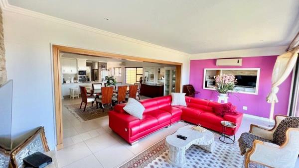 The large stylish dining and lounge area with glass seamless stacking doors open onto the patio and private garden area with gorgeous sea-views, the dining and lounge area have their own air-conditioners, so there is no getting hot in summer in this home.