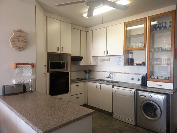 Welcome to Paradise. If you are looking for a great place to live, or a magic, beachfront, sea view apartment to generate income from holiday letting then you must check out this great opportunity. The very well managed complex has a stunning swimming pool, back up water, good security and on site caretaker. This well presented, fully tiled 1st floor apartment comprises of 4 bedrooms, 2 bathrooms, 1 en-suite and an open plan kitchen lounge diner leading onto the covered, stunning sea view balcolny, covered carport and direct beach access. See you soon.