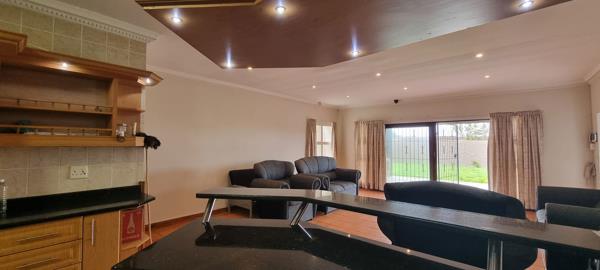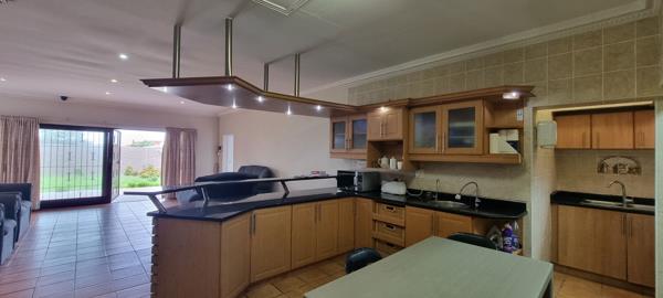 The kitchen includes a delightful breakfast bar for casual dining or meal preparation. Entertain guests in style with an indoor braai area that connects to a versatile bedroom, which can easily be transformed into a bright sunroom for relaxation or gatherings. Movie nights will be a hit with the built-in projector connection in the indoor braai area.