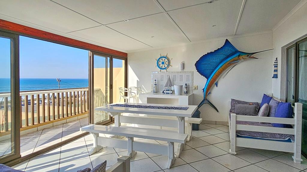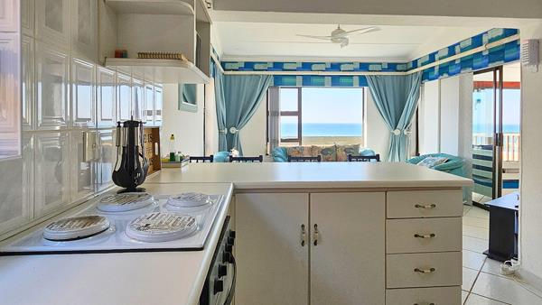 WOW, WOW, WOW..... !!!!! This is THE ULTIMATE BEACH APARTMENT! This light and extremely spacious 2 bedroom apartment has the location to die for, and the view to live for. Beautiful ocean vibes and views all round!! The kitchen is sparkling white, has a beautiful with a sea view , and there is a kitchen breakfast nook. Stunning... The kitchen is open plan to a lounge that opens to a sun room. THIS IS WHAT DREAMS ARE ALL ABOUT!!!!! Here is where you will be spending hours of enjoyment breathing the ocean in. This room is, as everything in the apartment, spacious and extremely light with stackable doors that can open all the way. It opens to a balcony that runs the length of the apartment. There is a large, white dining table and large couches. This immediately opens the apartment to being a 6-sleeper. Potential rental income is an attractive bonus as the complex is rights across from the Shelly Beach Ski Boat Club. See the sea, smell the sea, hear the sea..... almost TOUCH the ocean.