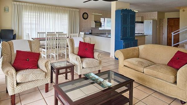 Upstairs, we find 3 spacious bedrooms. The main bedroom is en-suite to a full bathroom and opens with sliding doors to another broad balcony with even bigger sea views. The bathroom is super spacious with a beautiful corner bath. The second bedroom also have sliding doors to this balcony and shares the 2nd full spacious bathroom with the 3rd bedroom. Though inland, the sea views still ooze an ocean vibe. The furniture is of good quality as well a the curtains and extras. Permanent home for a lucky family, or holiday home, either way, a great investment. Pet friendly with permission from the body-corporation. Generally the house is in good condition, but needs a little TLLC here and there. Please have a look at the video. Call Linda.....