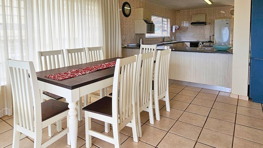 This complex is quite small with only 8 townhouse in a quiet and established area, close to all amenities. As you enter this beautiful 3 story townhouse, you enter from the back of the house into the 1st floor, that is your living area. On the ground floor you have 2 automated garages, so you have to walk up the side, with a few steps and a slight uphill, to the door that you enter through. Open and spacious, bright and welcoming, this open plan area opens to a broad balcony from where you can enjoy peace, privacy and relax. The kitchen is gorgeous and elegant with granite tops and a kitchen island. Cook in glamour while gazing at the ocean......bliss indeed. There are a dishwasher and washing machine neatly merging with the kitchen. The lounge/ dining room area opens with sliding doors to said balcony, allowing the ocean breeze to dance through your home. The furniture is sophisticated and practical at the same time. Remember, this house is being sold fully furnished!!! Move in ready! On this level you also find a guest toilet and a large walk-in cupboard, under the stairs.