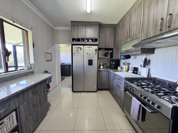 The expansive property is a nature lover''s paradise, with numerous fruit trees, a chicken coop and run, and space for a few goats. The house is equipped with eight solar panels and two batteries, ensuring energy efficiency. Additionally, there is a backup water tank (5000l) with 3 stage filtration as well as reverse osmosis for added convenience and clean drinking water. The property features both a gas geyser and an electric geyser for hot water needs.