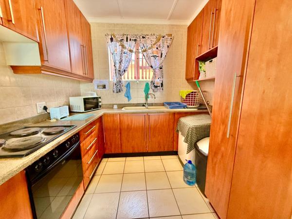 The main bedroom has built-in cupboards, a ceiling fan and an en-suite bathroom. A walk down the main passage and you will find a separate bathroom and a separate shower. The second and third bedrooms have built-in cupboards, ceiling fans and carpeted floors. Sold fully furnished.