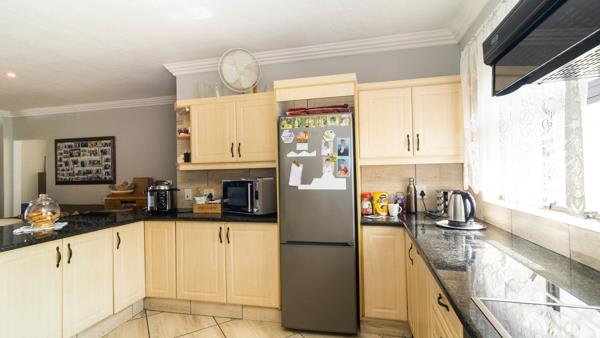 * Open plan kitchen with granite counter tops - glass top hob - under counter oven and extractor fan - scullery and laundry - with sea view and lots of cupboards