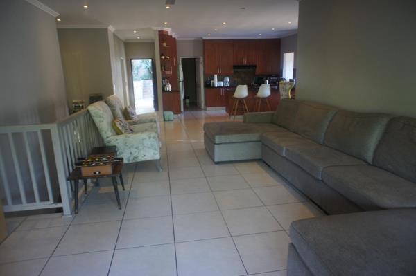 Step inside to an expansive open-plan living and dining area, leading to a covered balcony through glass sliding doorsideal for relaxing or hosting guests. The well-appointed kitchen features granite countertops, a breakfast bar, and a separate scullery and laundry area, ensuring both style and practicality.