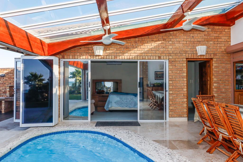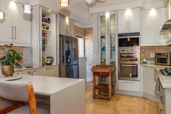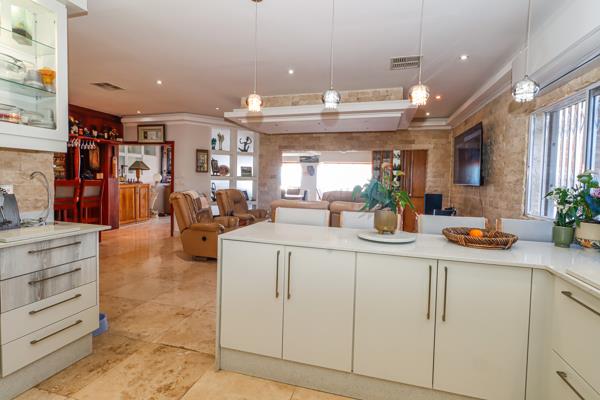 To the rear of the home, near the kitchen, youll find two additional bedroomsone with an en-suite and another serviced by a separate bathroomideal for guests or growing families. On the opposite side of the property, a fifth bedroom with built-in cupboards and its own en-suite bathroom ensures comfortable accommodation for everyone. Two of the five bedrooms enjoy sweeping views of the sea.