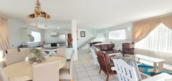Enjoy breathtaking sea views from this stylishly furnished 3-bedroom, 2.5-bathroom home. The master bedroom features a private jacuzzi, while both the main and second bedroom have balconies to soak in the scenery. The ground floor offers an open-plan kitchen with granite tops, stove with hob and a separate storage room. Dining and lounge areas flow through sliding doors onto a spacious patio perfect for entertaining. The property includes 2 lock up garages a fully fenced and alarm secured garden with Trellidor security, water tanks and is newly painted inside. Wifi ready and move in ready, this home is perfect as a holiday retreat or a solid investment. Furniture negotiable.