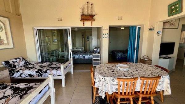 The unit offers a comfortable layout with an open-plan lounge, dining area, and kitchen that opens onto a spacious balconyperfect for morning coffee or sundowners with a sea breeze. The main bedroom has its own en-suite bathroom, while the second bathroom serves the rest of the apartment. With extra sleeping space in the dining area and a bunk bed in the main bedroom, this apartment easily sleeps up to 8 guestsideal for family holidays or weekend getaways.