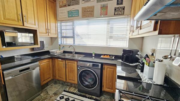 The main residence offers three well-appointed bedrooms. The primary suite is generously sized and features air-conditioning, a ceiling fan, built-in cupboards, and a stylish ensuite bathroom with a large shower. The second bedroom, currently used as a home office, includes built-in cupboards and can easily be transformed back into a bedroom. The third bedroom is fitted with a double bed, built-in cupboards, air-conditioning, and a ceiling fan. These two bedrooms share a spacious bathroom with both a bath and a shower. Throughout the home, six ceiling fans and five air-conditioners ensure year-round comfort. An attached flatlet adds versatility, ideal for extended family, guests, or rental income. It includes a spacious lounge, kitchenette, one bedroom, a walk-in vanity and wardrobe, and a private bathroom with a shower. Both the main home and the flatlet are fitted with security gates and alarm systems for peace of mind.