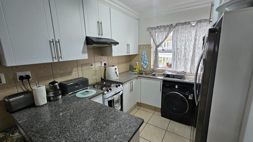 Discover this inviting 3-bedroom apartment nestled within a security estate in Shelly Beach. This coastal haven offers a blend of comfort and convenience, ideal as a holiday home or permanent residence. The complex itself boasts a classicalMediterranean architectural style with established landscaping and paved pathways, hinting at the scenic views available from its elevated position. Spanning 128 square meters, the interior features an open-plan living and dining area, bathed in natural light from large windows and equipped with an air conditioning unit for year-round comfort. The modern kitchen is both compact and functional, showcasing white cabinetry, granite countertops, a built-in gas hob, oven, and extractor fan. It also includes a double sink, space for a washing machine, and a practical breakfast bar, making it perfect for everyday living and entertaining.