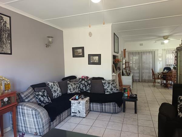 The home features a lovely dining area that opens onto a welcoming patio or braai space, ideal for entertaining. The kitchen includes an adjoining scullery and laundry room for added convenience. Attached to the kitchen is a spacious room often considered a teenagers delight, thanks to its proximity to the fridge. This versatile area can be used as a study, a childrens lounge, or even a generous pantry.