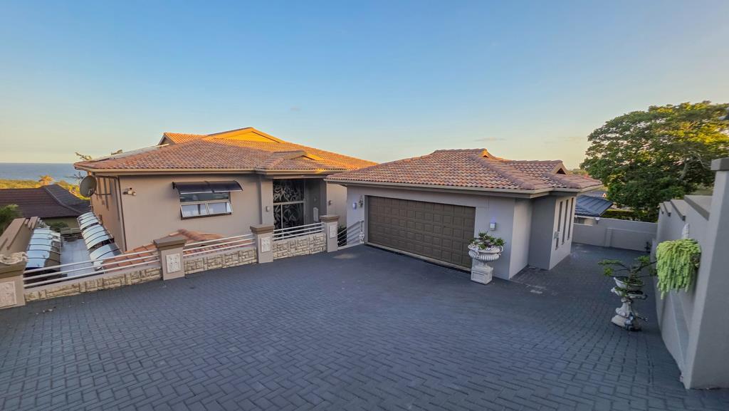Experience luxury coastal living within an exclusive Estate in Shelly Beach. This exceptional home combines modern design, security, and natural beauty in one of the South Coasts most sought-after estates. The home makes a strong first impression with its contemporary exterior, manicured gardens, and wide paved driveway leading to a decorative gate and elegant, multi-level entrance. The frosted-glass front door sets the tone for the refined interior that follows, with distant ocean views enhancing the sense of space and tranquillity.