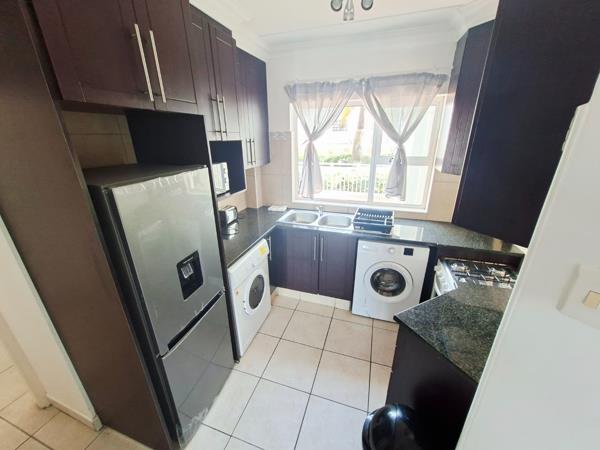 Embrace the quintessential South African outdoor lifestyle on your spacious, covered patio. With terracotta-style tiling and robust white railings, this private haven offers delightful views of the surrounding neighbourhood and lush greenery, with glimpses of the sea. Direct access to a verdant garden further enhances the indoor-outdoor flow, while communal amenities such as a sparkling swimming pool and an exclusive clubhouse elevate the leisure experience. Pets are welcome, adding to the home''s charm.