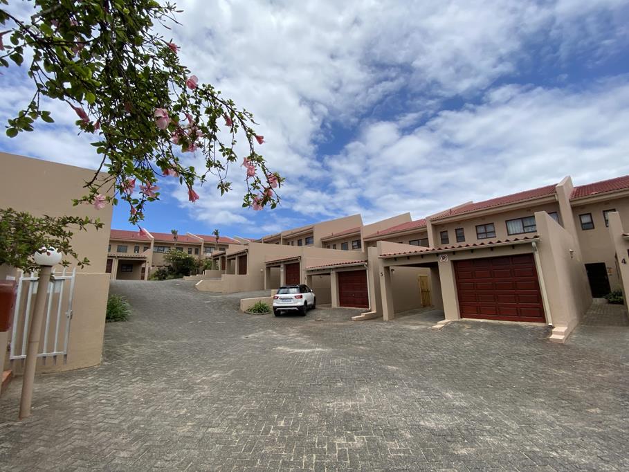 The home features a combined lounge and dining area that flows easily to a private braai patio, ideal for alfresco entertaining. Upstairs, two of the bedrooms open to a balcony with refreshing sea breezes, providing another peaceful outdoor space. A guest toilet downstairs adds extra convenience.