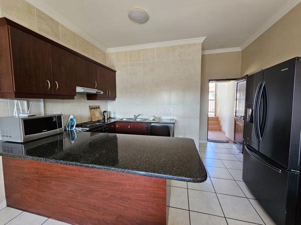 Both bedrooms are generously sized, featuring built-in wardrobes and ensuite bathrooms. The kitchen is equipped with sleek granite countertops and ample storage space.