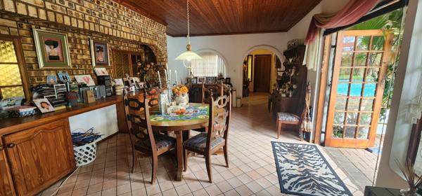 The property is fully walled and equipped with an electric fence, providing utmost security and privacy. In addition, the property is fully alarmed for added peace of mind. Other notable features include a double automated garage with direct home access, domestic quarters, an inviting swimming pool nestled in a breathtaking tropical setting, and a thatched lapa for undercover entertainment. Furthermore, the property is equipped with a JoJo water tank, ensuring a continuous water supply in case of water cuts.
