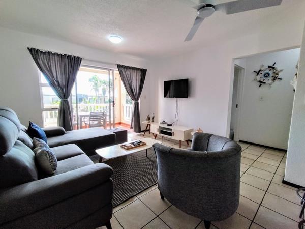 Furnished 2-bedroom Apartment with beach access. This stylish, fully furnished 2-bedroom apartment is situated in a prestigious beachfront complex. The open-plan living and dining area is elegantly designed with modern furnishings, creating a welcoming space for relaxation or entertaining.