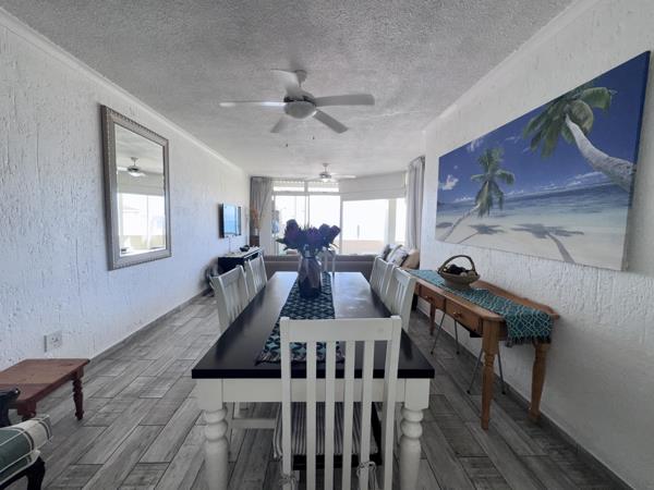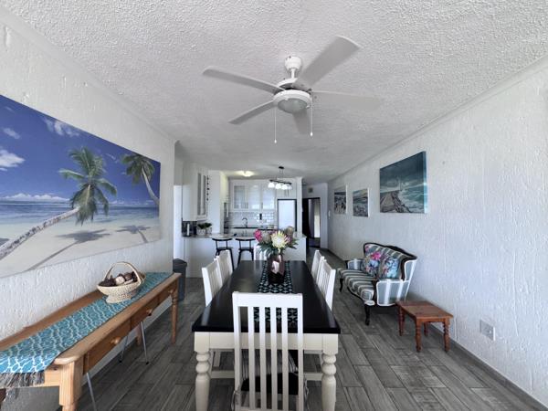 Step into luxury with this exquisite high-end beachfront property boasting a breathtaking view of the ocean. Upon entering, you are greeted by a modern open-plan kitchen and living room area that seamlessly flows out onto the balcony, offering a perfect setting for enjoying the panoramic ocean vistas. The main bedroom features an en-suite bathroom and a private door leading to the balcony, providing a tranquil retreat with stunning views. Down the hallway, you will find two spacious bedrooms that share a stylishly appointed bathroom. This property exudes modern elegance and is meticulously maintained, offering a turnkey solution for discerning buyers as it is being sold with the furniture included. Experience the epitome of coastal luxury living in this impeccably designed and well-appointed residence.