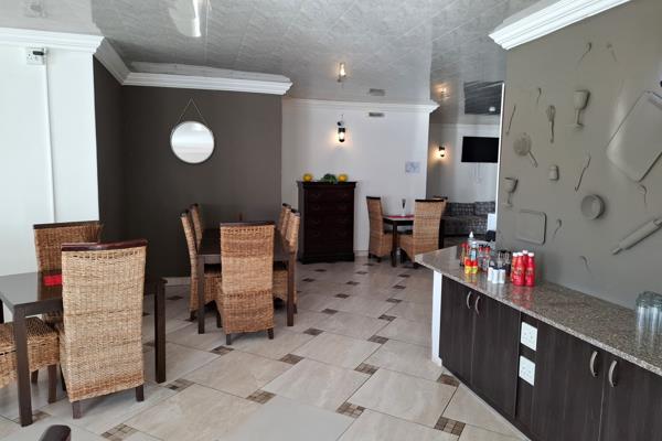 The propertys features include a restaurant area, braai, playground, and spacious common areas that cater to both family living and entertaining guests. Tile floors, sound-aluminum windows, and modern finishes provide a sleek and modern aesthetic, while energy-efficient amenities like solar heating add to its appeal. For ultimate convenience, there are 19 parking spaces available on this generous 2,040 square metre lot.