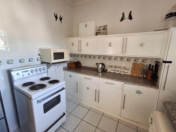 Step into an airy open-plan lounge, dining, and kitchen area, fully equipped to comfortably accommodate six guests. The patio and lounge offer stunning sea views, and with gas and charcoal braais allowed, its the ideal space for relaxing or entertaining.