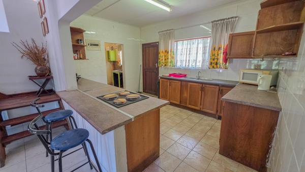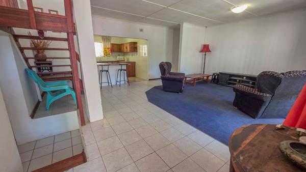 The main bedroom sits upstairs. You get built in cupboards, a private lounge and a patio with a clear view over the property. The upstairs bathroom sits a few steps down from the landing and includes a bath, toilet and basin. The outdoor area offers strong value. The pool sits next to a large entertainment space with built in braai facilities. The front yard gives you open space for recreation or future plans.