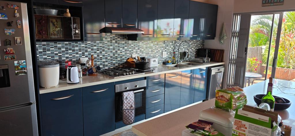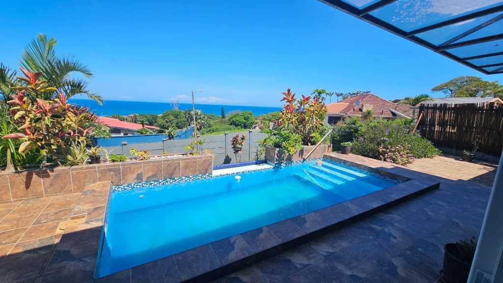-Ideal for Entertaining: Large sliding doors lead to a patio that presents a captivating view of the sparkling swimming pool, creating an idyllic spot for relaxation and enjoyment of the ocean vistas. The enclosed braai areaman cave offers a cozy space for year-round entertainment and socializing.