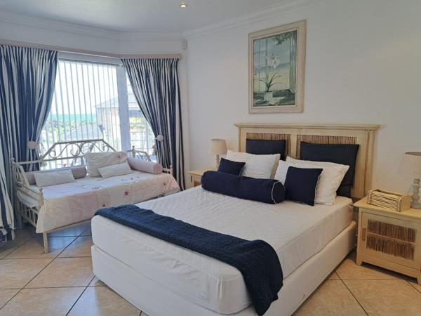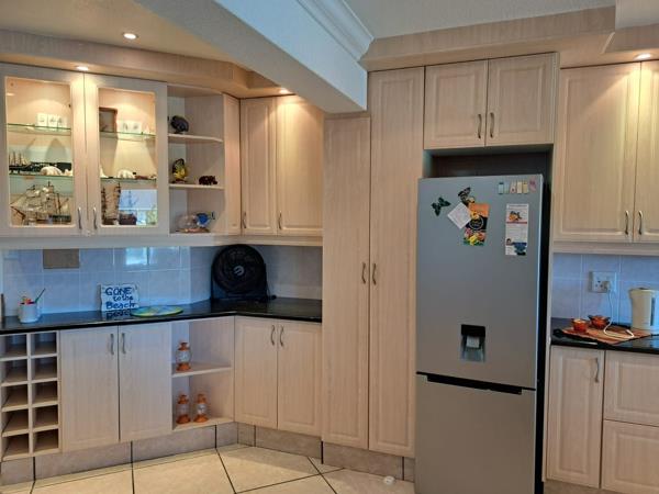 The main bedroom features a double bed, built-in cupboards, en-suite bathroom with corner bath and shower, and direct balcony access for private sunset moments. Two additional bedrooms provide ample space - one with twin beds and another with a double bed that flows into a versatile recreation room. This room, with sliding windows and cupboards, can easily double as a gym, study, or games room. A second bathroom with shower, basin, and toilet serves the additional bedrooms. Included in the sale is a pool-and-tennis table. Residents can enjoy access to a communal pool shaded by palm trees. Within just 30 minutes, you will find top golf courses, Wild Coast Sun Casino, Wild Waves Water Park, shopping malls, arts and crafts, and more. This property is an entertainers dream - call Petro today to make an offer.