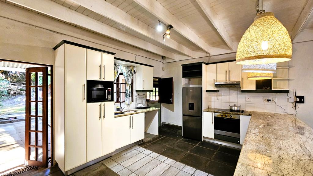 This exceptional double-storey home in the heart of Uvongo offers modern luxury, versatility, and space in a prime coastal setting. Boasting four generously sized bedroomsincluding a spacious main en-suitethis residence is perfect for families or those seeking room to grow. The upper level features beautiful wooden floors in two bedrooms, adding warmth and elegance. A standout feature is the fully equipped dance studio or beauty bar, offering exciting potential for a home business or creative space. The home also includes two full bathrooms, a neat kitchen with ample space for all major appliances, a scullery or storage area, a dining room, and a cozy TV lounge that flows effortlessly onto a large covered patioideal for entertaining or relaxing with a view of the lush, manicured garden.