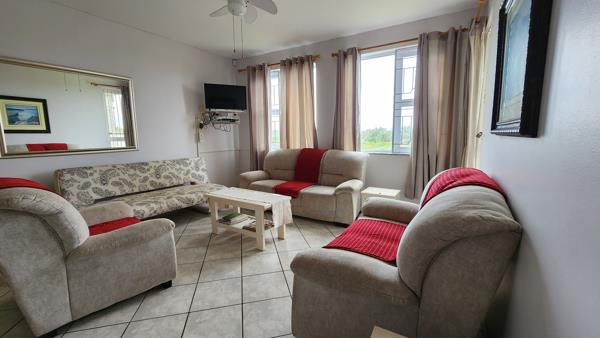 This beautiful apartment overlooks the sea. The apartment is on the ground floor of a secure complex in Uvongo and wheelchair friendly. The complex is within 200 m of Uvongo Beach and 100 m from the beachfront.
