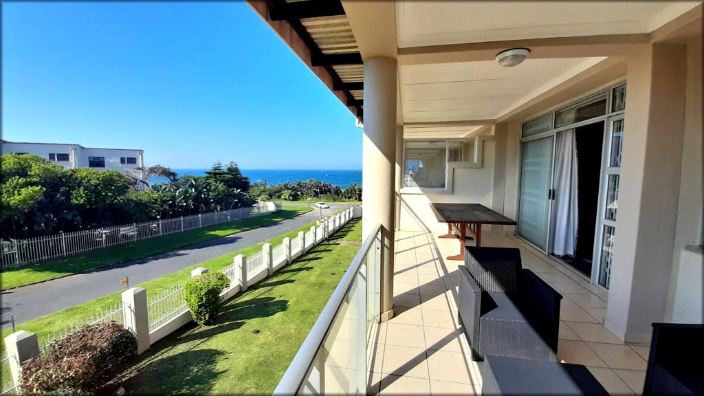 The dining room and lounge area is open plan. The large sea facing the balcony is ideally suited for entertaining and flows effortlessly from the lounge area. Sold furnished. The complex is walled with electric fencing, communal braai area and swimming pool.