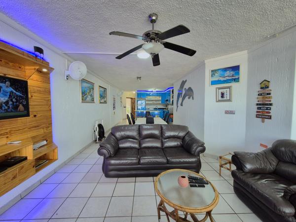 Experience coastal living at its finest in this exquisite beachfront apartment, offering direct access to the pristine Uvongo Beach. Enjoy uninterrupted breaker sea views from the spacious balcony, which extends to the living areas and the main bedroom. The tastefully designed interior with mood lighting, embraces a beach theme, creating a delightful ambiance that children adore. This apartment does very well for holiday letting or even as a private holiday unit. This well-maintained complex features an extra length tandem garage, immaculate gardens and communal areas, providing a serene and welcoming environment. Located just a stone''s throw from Uvongo Beachfront and all local amenities, this property promises a lifestyle of convenience and luxury. Dont miss the chance to own your piece of paradise, get in touch for a viewing.