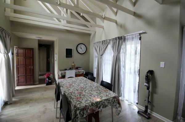 Convenience is key with a double garage featuring an automatic door and built in cupboards, and rest easy knowing the property is equipped with an alarm system as well as Trellidor fitted at all entrances and windows. There is also a water tank, ensuring security and self-sufficiency.