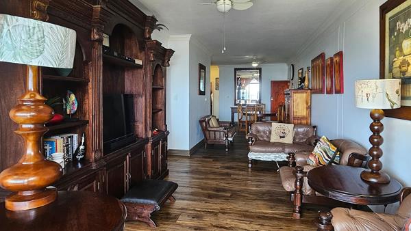 The kitchen is sparkling white and modern with granite tops and a gas stove. It has recently been upgraded and will truly be a pleasure to cook in. The whole apartment (apart from the kitchen), has been furnished with wooden furniture. Unique and special, scarce wood. Unbelievably expensive and beautiful wood. The dining suite is Black Wood and the main bedroom has Matumi wood furniture. The main bedroom is en-suite to a bathroom with a bath and opens to the same balcony as the lounge. Waking up with the ocean in your sight!!! The 2 other bedrooms are spacious and share a second bathroom with a shower. All the rooms have ceiling fans and the whole apartment has new, stylish, laminated flooring throughout. The complex is well maintained and has a beautiful communal swimming pool. There is direct access to Lilliecrona with Lucien Beach 500m away. PERFECTION!!! The apartment comes fully furnished and has a double, tandem, undercover/building parking.. Water tanks will soon be installed, but this area seldom has water problems. Give me a call!!! This is a winner indeed!!