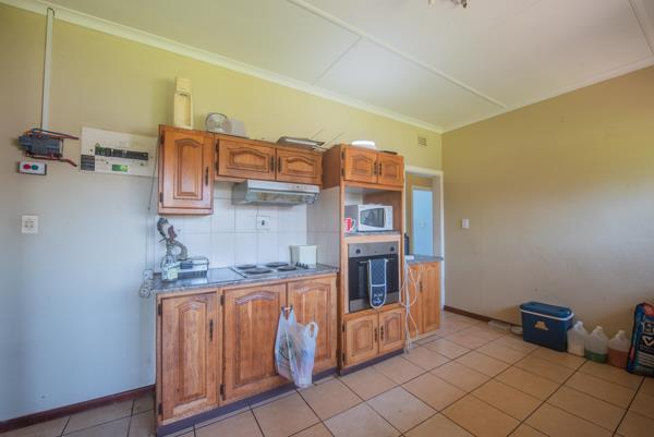 The property also includes a 1-bedroom flat featuring a shower, basin, and toilet, with an open-plan lounge and kitchen, as well as its own single garage, and a double garage for the main house. At the rear, there is a tidy room with a separate shower, basin, and toilet designated for domestic staff. It is conveniently located near all amenities and just a five-minute drive from Uvongo main beach.