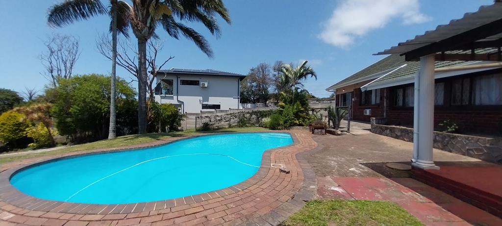 This charming family Home in Uvongo. The property is fully walled with a spacious garden, ideal for beloved pets, along with a generously sized swimming pool, and a small distant sea view. Upon entering, you will find two distinct lounge areas connected by archways to the dining room. One lounge includes a cozy fireplace, while the second lounge opens onto a spacious entertainment deck that overlooks the pool and features a built-in braai area.