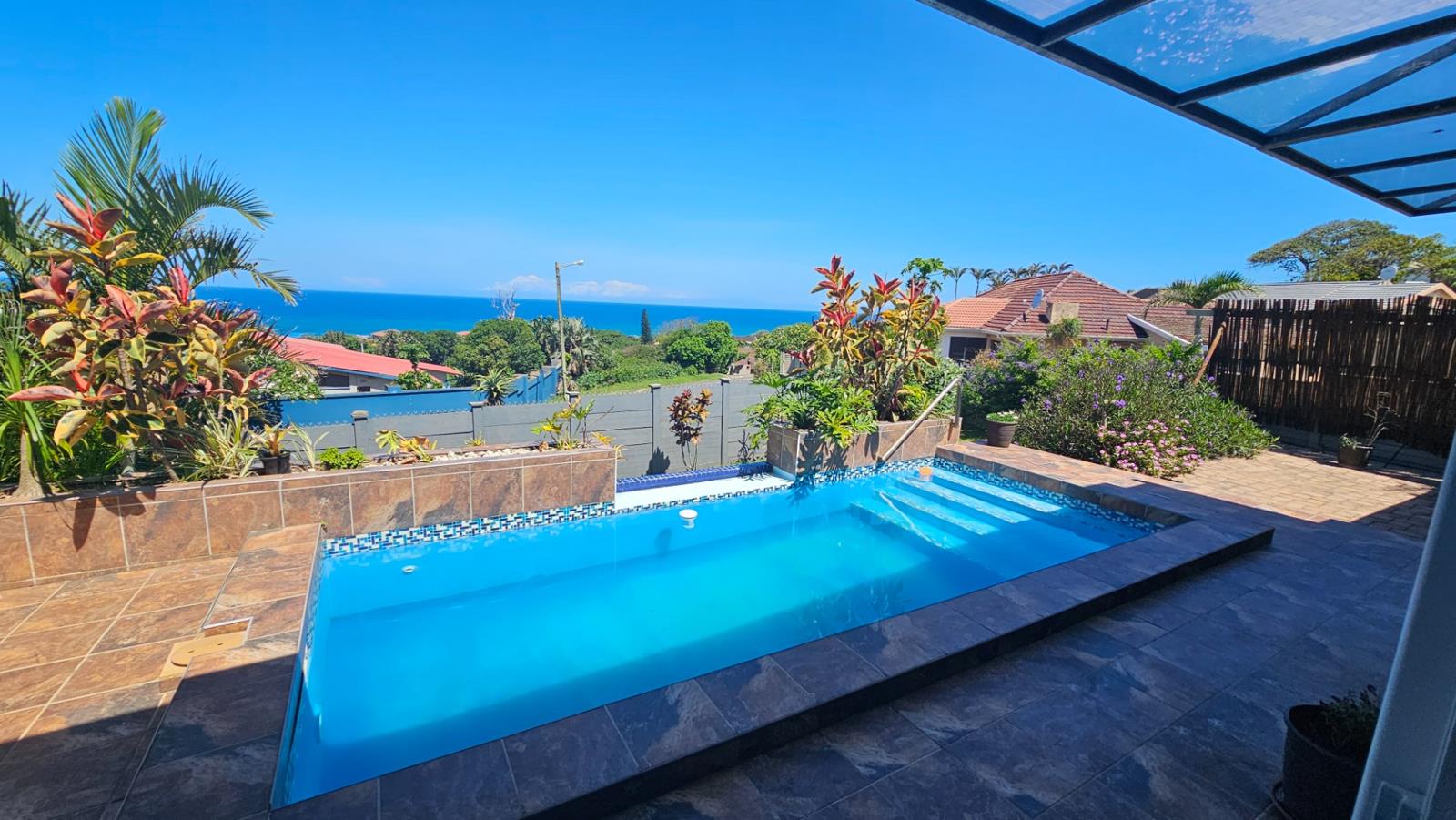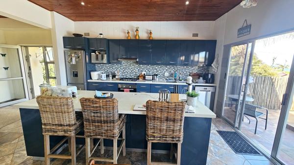 Discover this beautifully renovated 3-bedroom, 2-bathroom home that perfectly combines modern luxury with breathtaking sea views. The spacious open-plan design boasts two lounge areas and a sleek, contemporary kitchen featuring a center island, ideal for entertaining. Sliding doors open onto a patio that overlooks a sparkling swimming pool, creating the ultimate space for relaxation and enjoying the mesmerizing ocean panorama. An enclosed braai area/man cave adds a cozy retreat for year-round entertainment. The home is equipped with solar panels, an inverter, and water tanks, ensuring sustainable and efficient living.